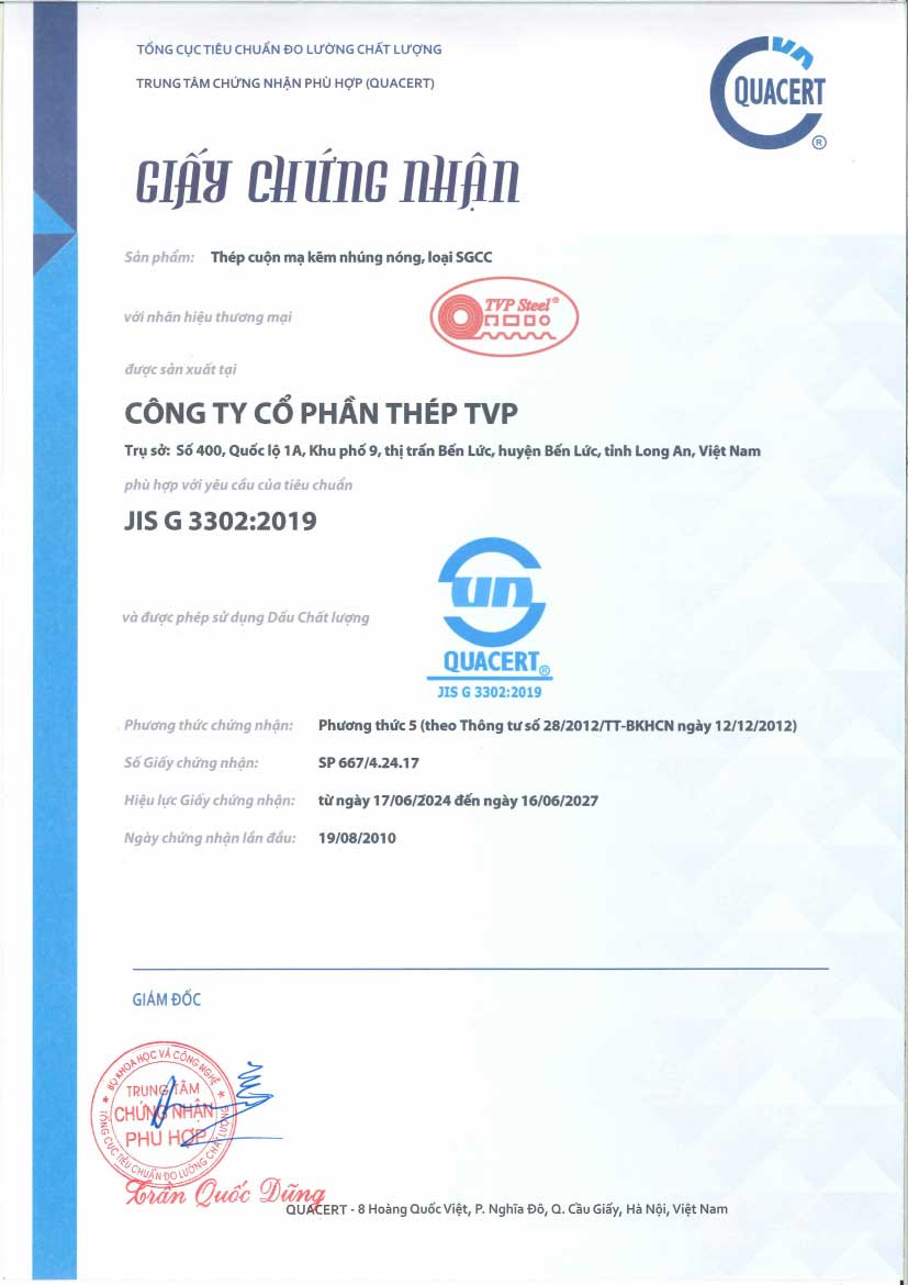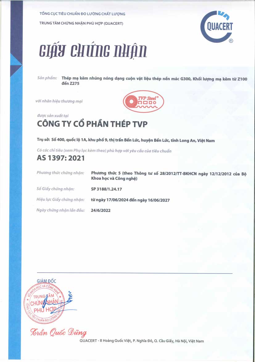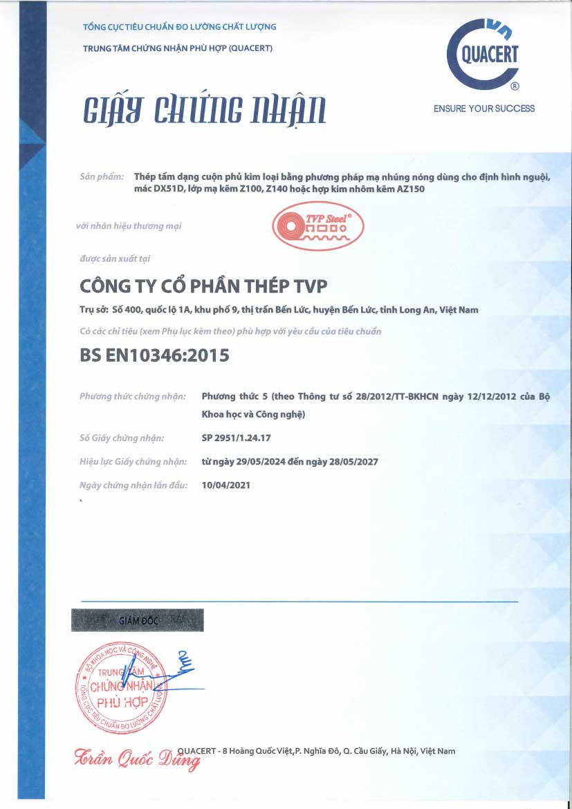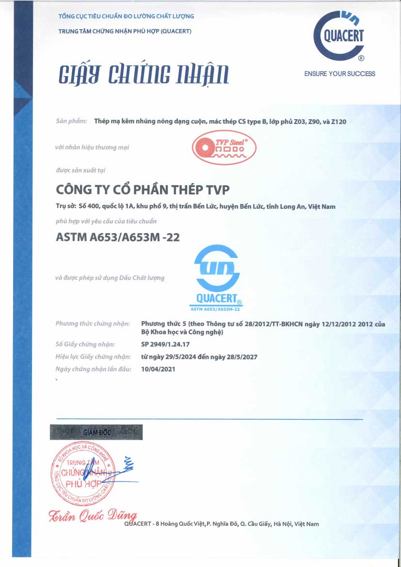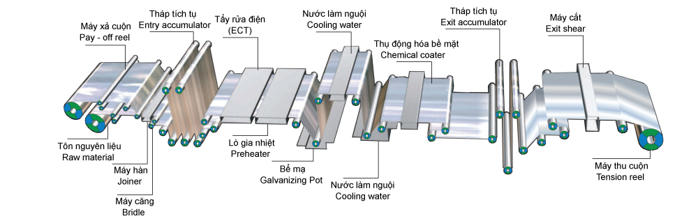 Công ty cổ phần Thép TVP còn sử dụng kẽm thỏi chính phẩm tinh khiết 99.995%. Đồng thời kết hợp các công đoạn tẩy rửa đặc biệt như là công nghệ tẩy rửa điện và hệ thống phủ lớp chống oxi hóa. NOF (Lò đốt không oxy) làm sạch bề mặt tôn tiên tiến nhất hiện nay trên thế giới, thân thiện với môi trường.